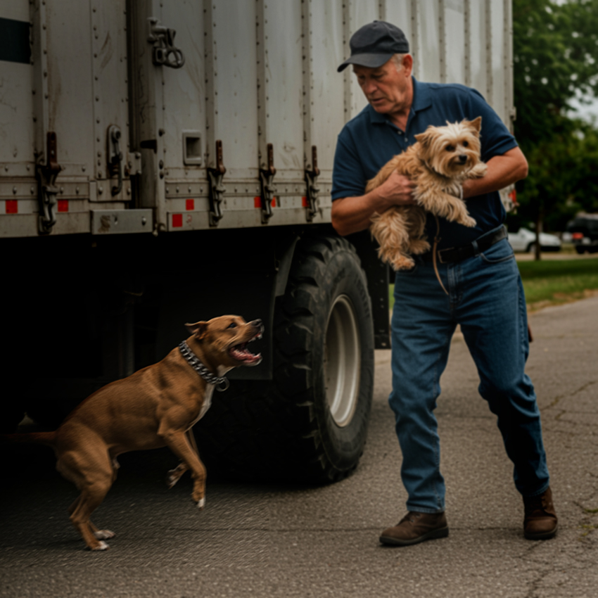 You often hear of dog owners with small dogs scooping them up and holding them up high to keep